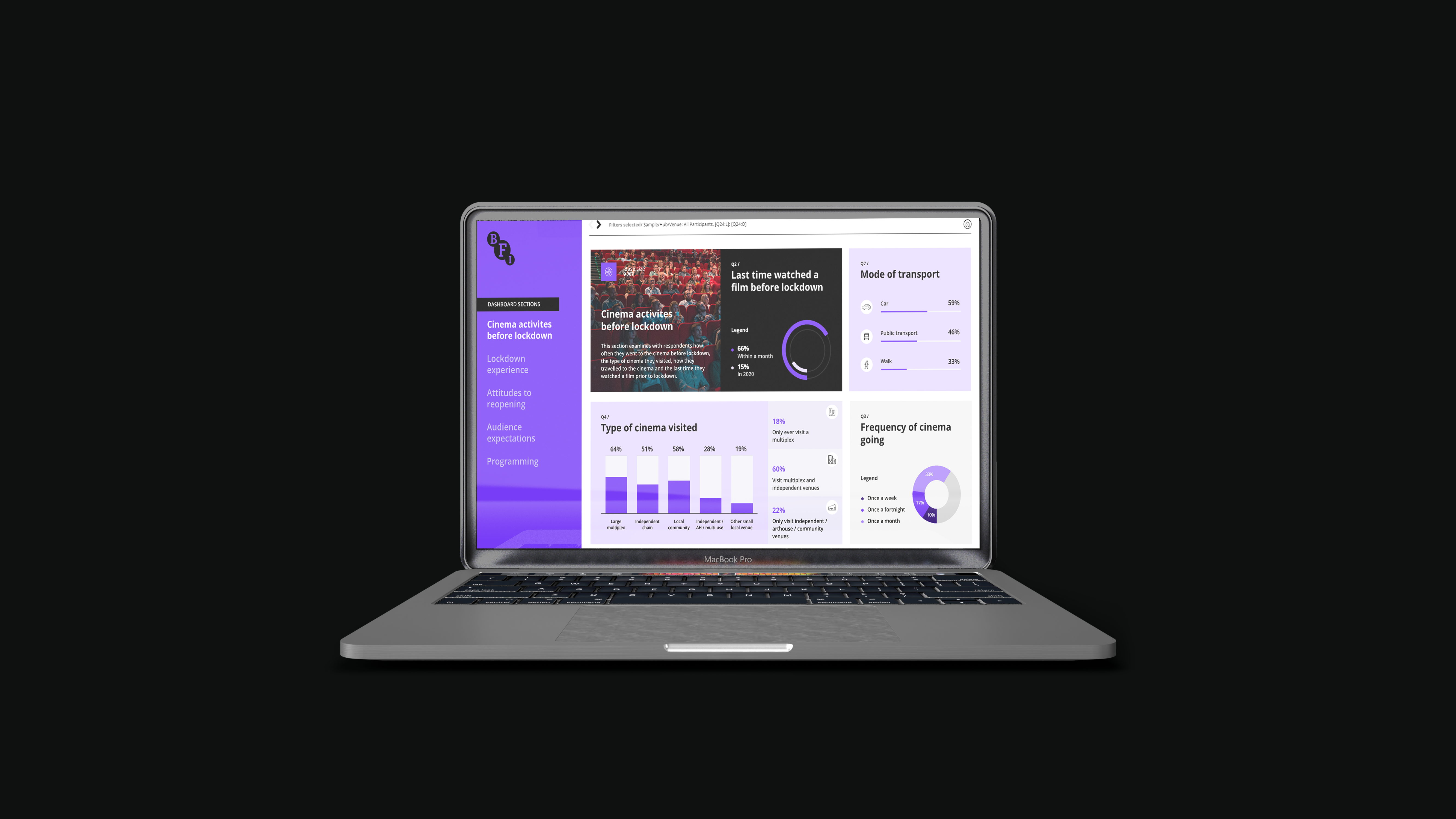 BFI did not have a clear way of displaying and understanding their findings surrounding audience sentiment on returning to the cinema following the Covid-19 coronavirus pandemic. They also did not know how to manage and display metrics as their study grew, this means the UI needs to be adaptable to growing UI elements and robust.